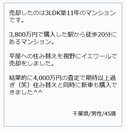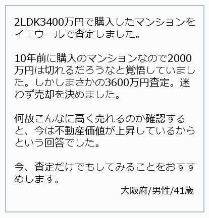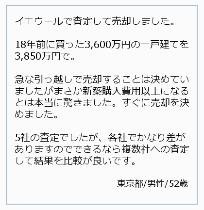 調べてみると、イエウールで査定した人は購入時よりも高くなっていた人がたくさんいるみたいです。