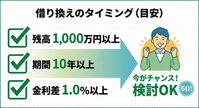 この3つの条件を満たしていれば、借り換えによる総返済額の削減効果が大きくなります。まずは自分の住宅ローンがこの条件に当てはまるかチェックしてみましょう。