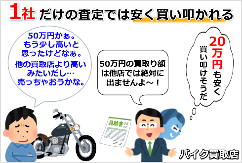 もちろん、買取業者も利益を多く取りたいので、バイクの査定額を低く見積もっているケースもあります。