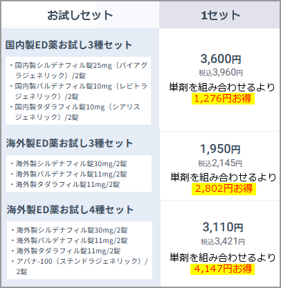 自分と相性のいい薬をみつけたいという方は、まずはお試しセットがおすすめです。