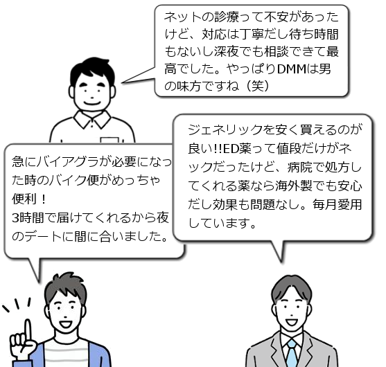 中折がひどすぎる、勃起時間をもっと延ばしたい、とにかく硬さがほしい…なら「安くED薬が手に入る」DMMオンラインクリニックがおすすめです。