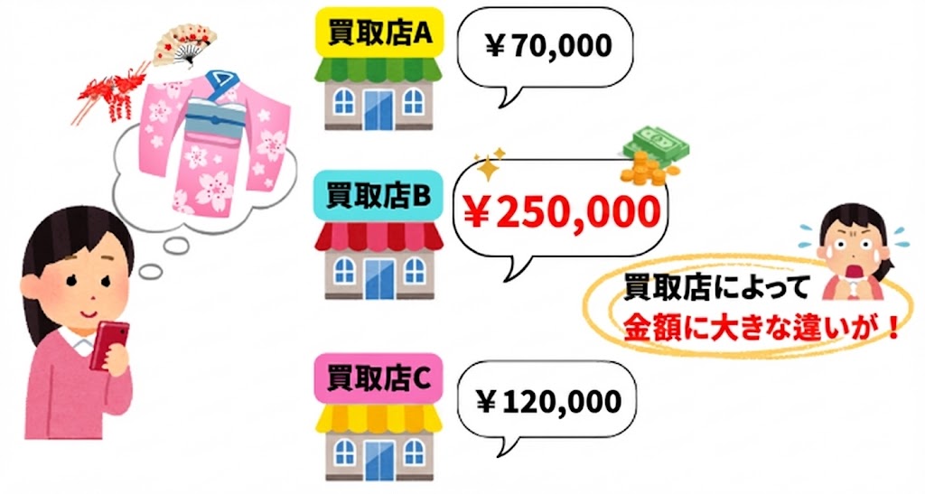 冒頭でもお伝えした通り、着物の買取金額は「どの店に頼むか」で驚くほど変わります。