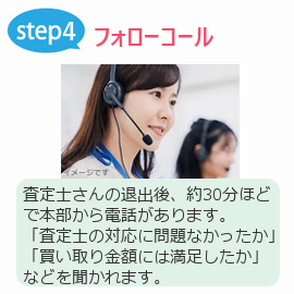 査定後には、売るか売らないかの意思確認の電話もあり強引な契約の心配はなし。もし売った後で気が変わった場合でも、8日後まではキャンセル(クーリングオフ)も可能なんですよ。