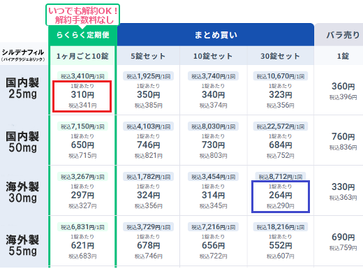 ED治療でもっとも使われる「国内製バイアグラジェネリック」なら、1錠341円。(いつでも解約OKな定期便)