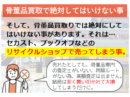 そもそも骨董品査定のプロがいないリサイクルショップなどで、「まぁいっか!」で売ってしまうと大損しちゃいます。