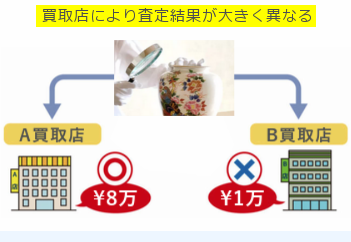 また、査定力が低い買取店の場合「この骨董品ならこれくらいの価格で販売できる」という基準が曖昧なことも多く、どうしても安い価格で買取をされてしまいがちです。