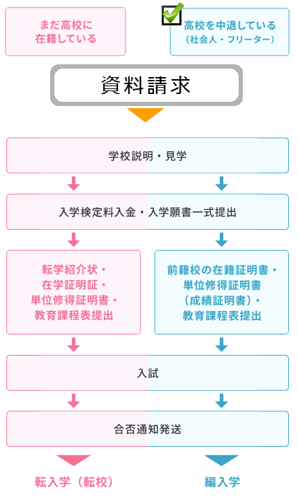 左側は転入の流れになります。右側の「編入」の流れについてわかりやすく説明していきますね。