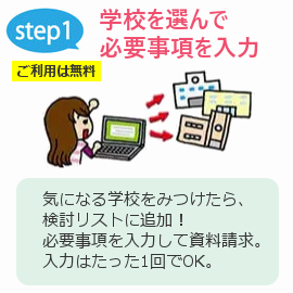 簡単な入力だけで、気になる高校の資料が一括請求できる無料サービス。