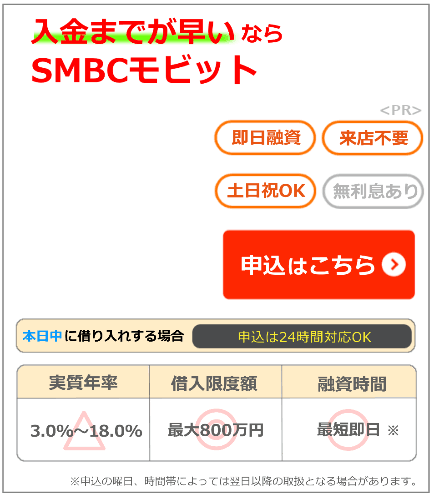 入金までのスピード重視ならSMBCモビットが選ばれています。