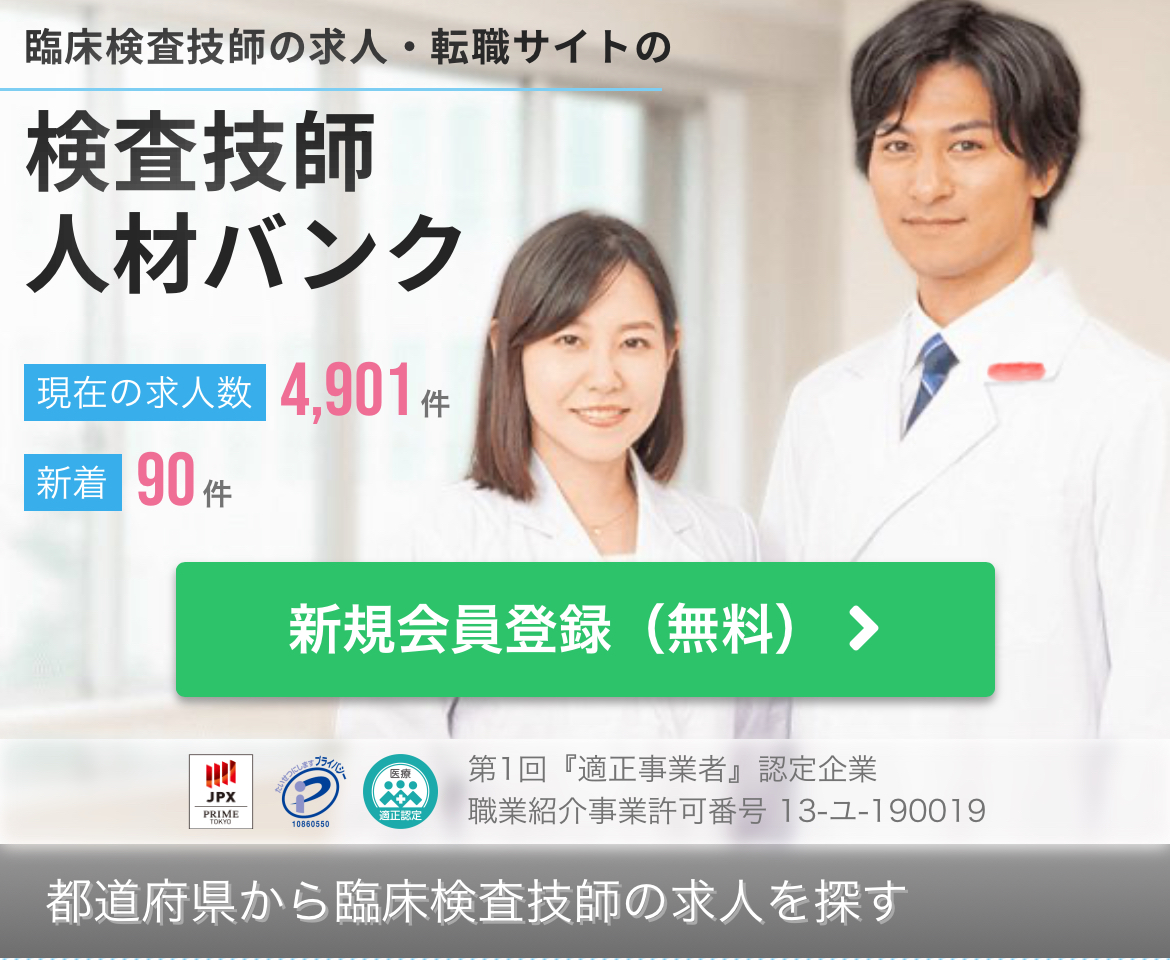 検査技師人材バンクは厚生労働省が認可している医療技師特化型の転職サービス。業界トップクラスの求人数を誇り、特に病院の求人が豊富です。取り扱っている求人やサービスの質も高いため、安心して利用できるでしょう。