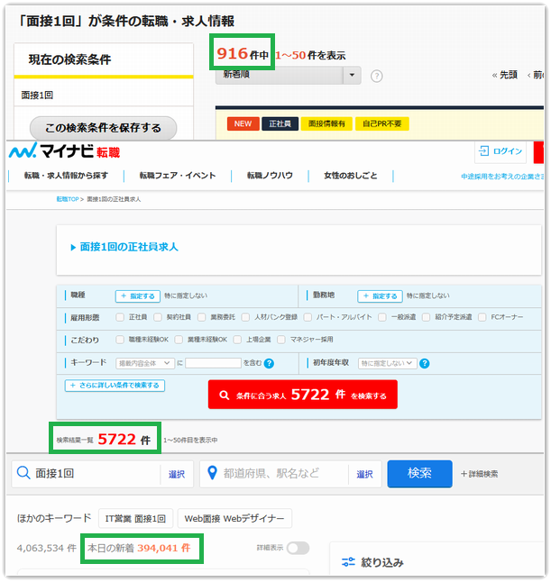「面接1回で内定する」ケースは稀なのでは?…と思われるかもしれませんが、実際に検索してみるとたくさんの求人が見つかるんです。