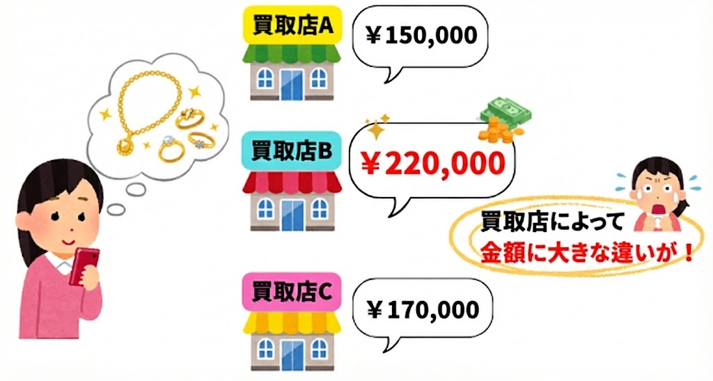 金の価値は同じでも、買取店によって買取額に大きな差が出る場合があります。
