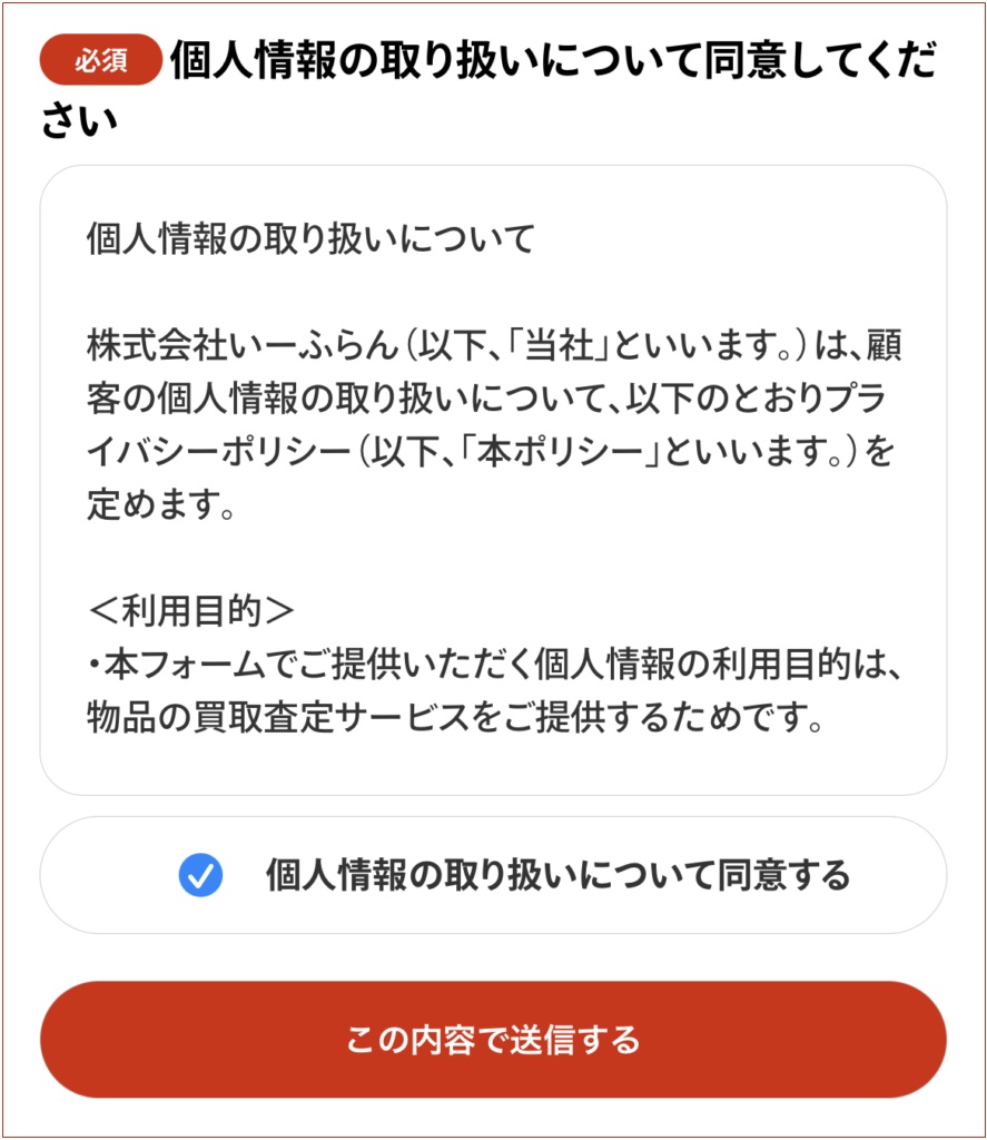 個人情報の取り扱いについて内容を確認し、同意にチェックを入れます。