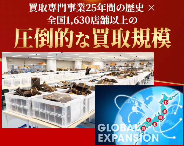 全国に1,630店舗以上を展開し、圧倒的な買取規模で高価買取を実現しています。