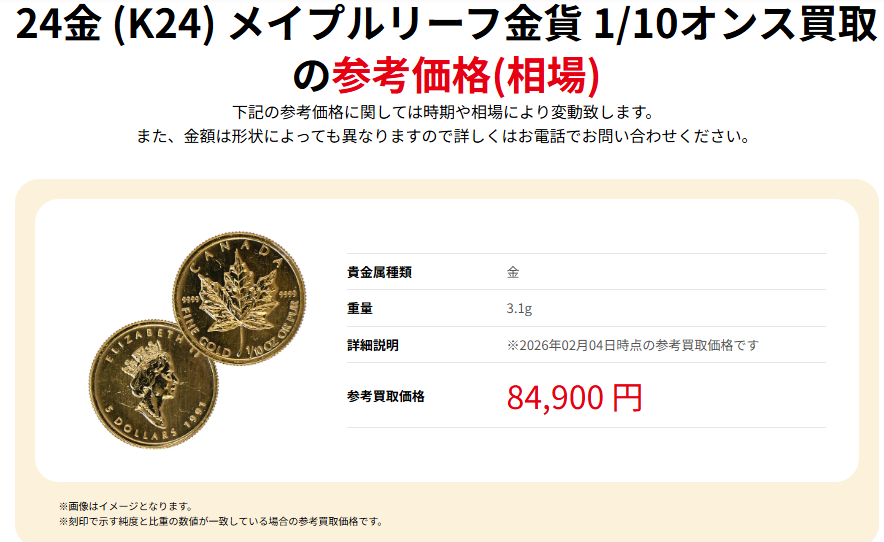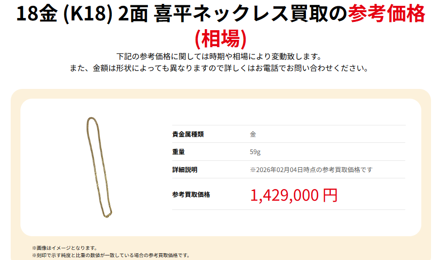 実際にメープルリーフ金貨や喜平ネックレスも高値で買取されていました。