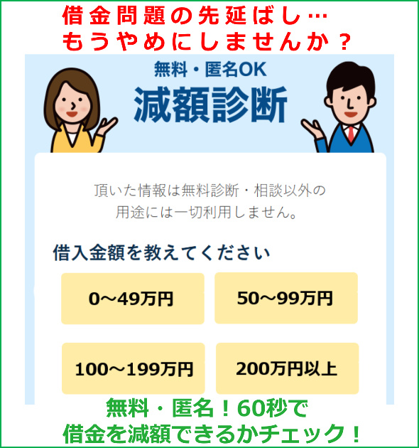 大幅に借金を減らせる可能性もあるので、まずは無料で減額診断をしてみましょう!