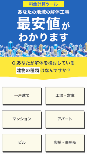 今や、解体工事を考えている多くの方が最初に利用している定番サービスです。