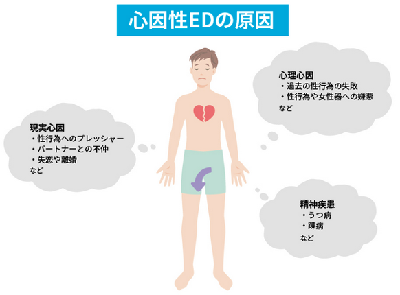 そのほとんどが心因性EDであり、そこには様々な要因があります。