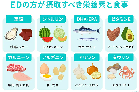 【2】ED改善には、栄養バランスのよい毎日の食生活を見直し心がけるのも大切です。