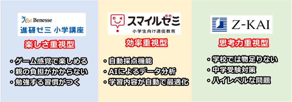 実はこの3社、それぞれ明確な「強み」と「向いている子」が異なります。