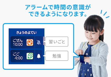 学習時間になるとアラームで知らせてくれるので、お子さま自身が時間を意識して勉強を始められるようになります。