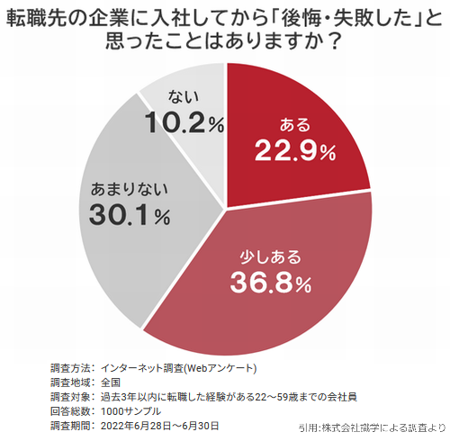 実は多くの方が、大なり小なり「転職に失敗した…」と後悔してしまっているんです。