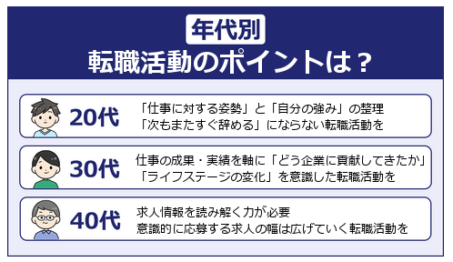 また、年代によっても転職の不安は変わるため、ポイントをおさえた転職活動を進めるようにする必要があるんです。