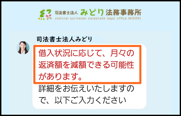 スマホから簡単に減額診断できるのが、SNSでも話題の『司法書士はじめ』の診断ツール。
