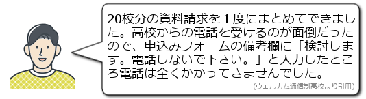 簡単な入力だけで、気になる高校の資料が一括請求できる、