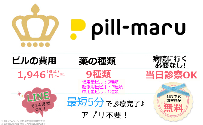 LINEで診察から処方まで完結するピルマルは、無料で産婦人科医に相談できることもありオススメです。