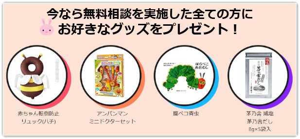 ベビープラネットなら相談は何度でも無料、無理な勧誘は一切ありませんし無料プレゼントまでもらえますので、損することもありません。