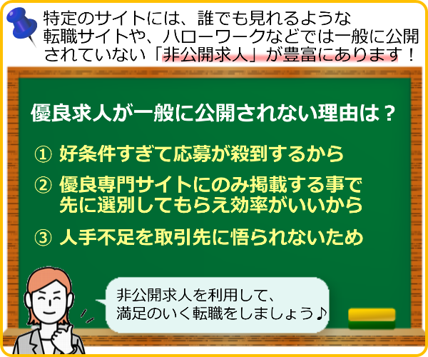 一般サイトには公開されない、非公開の優良求人を個別に紹介してくれる調理師(栄養士)専門の転職サイト」を使うことです。