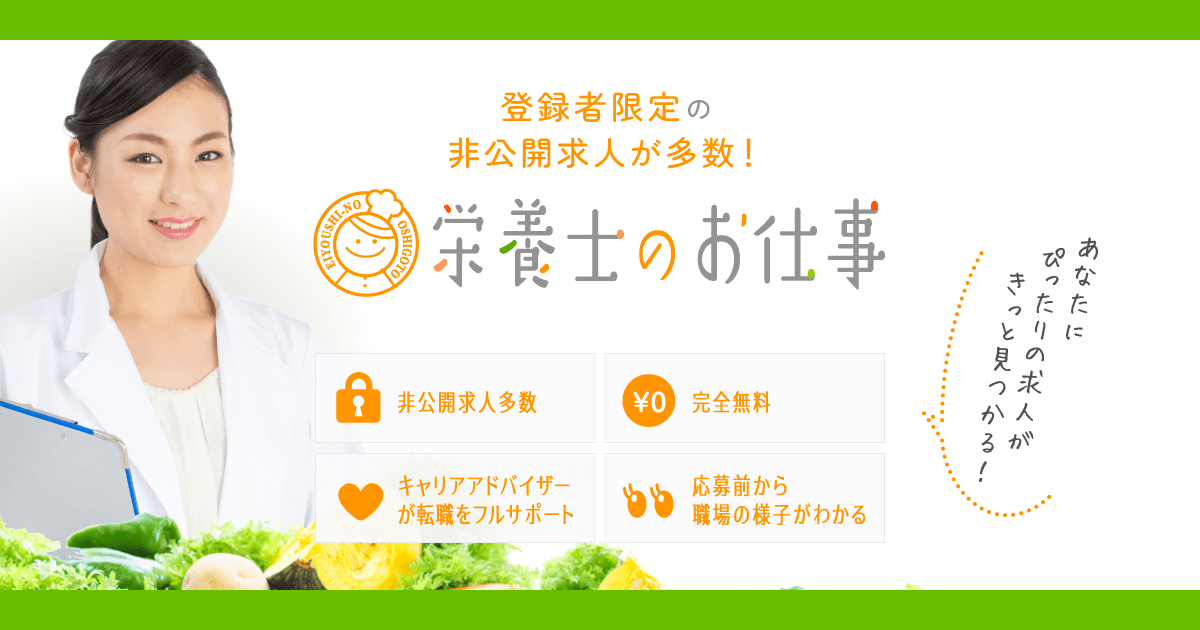 栄養士のお仕事は、栄養士・調理師向けに特化した求人紹介と転職サポートを提供する転職サイトです。